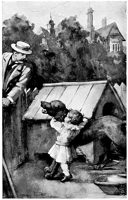 “You see, father, it was like this—Czar had nobody to love him. They were all afraid of him. I saw coachman give him his supper one day—he had the stable broom, and he pushed the pan to Czar with it, and never even gave him a pat, or said a kind word to him. And it did seem so hard! So when he was gone I just went up and patted him as he was eating his great bones, and then I sat just inside his kennel and talked to him all the time, and made it sociable for him; and he brought me the biggest bone of all, and I pretended I liked it very much, and then I gave it him back and he lay down and ate it, and I stroked him and talked to him all the time. He is such an interesting dog to talk to when you know him. And after that I went every day, and—when I can—I give him his food, and we always have a great deal of conversation, and it isn’t nearly so dull for him as it was at first. But I’ve never been able to go out with him, because coachman says I mustn’t loose him. But we’ve always longed to take walks together, and if you say we may, it will be so nice.”