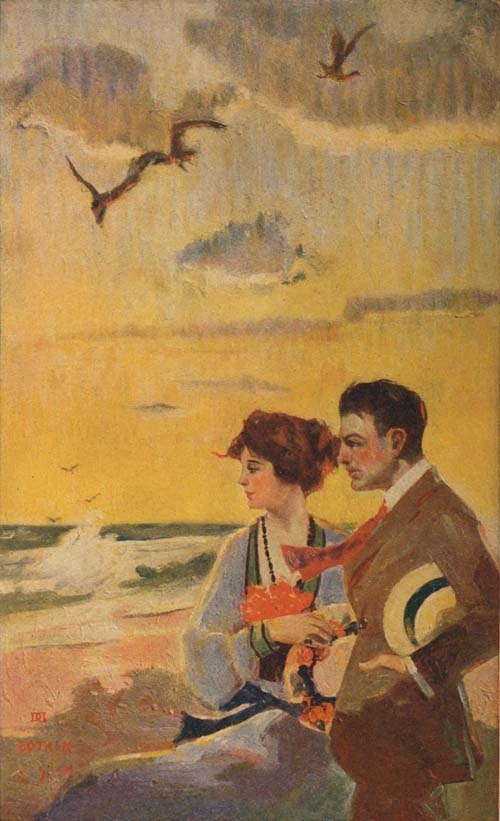 Cap’n Smiley, young Joe Sayre, and Jim Mapes went back with Mrs. Biggles. It was a clear night with many stars but the moon had not yet risen. The fresh, damp southeast wind was playing great chords upon the organ of the surf. Eight minutes’ tramping over the dunes brought the four persons to the Biggles house—a fisherman’s shack of two rooms, but tight and dry. The lamp’s glow came through window panes. After circling the house Cap’n Smiley moved to one of the windows. He came back immediately and said to the others with a low chuckle:
